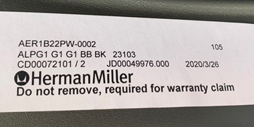 ! 부착된 허먼밀러 보증라벨을 분실하거나, 소비자 과실에 의해 손상이 생긴 경우, 사용과정의 정상마모 또는 오염은 보증대상에서 제외됩니다