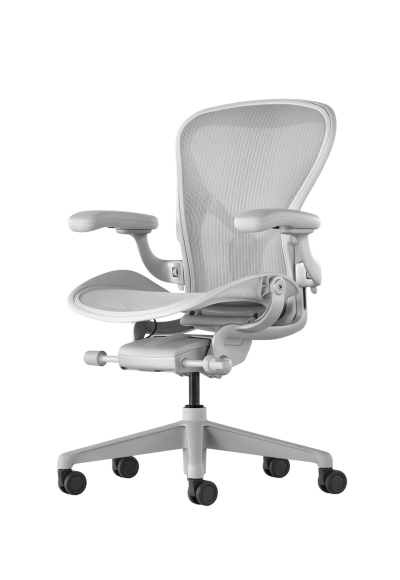 에어론 사무용 의자는 선구적인 펠리클 서스펜션 소재와 특허받은 PostureFit SL 등받이를 통해 가슴을 열고