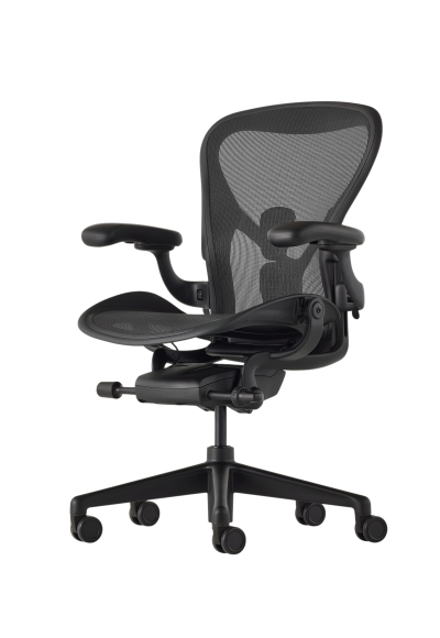 에어론 사무용 의자는 선구적인 펠리클 서스펜션 소재와 특허받은 PostureFit SL 등받이를 통해 가슴을 열고