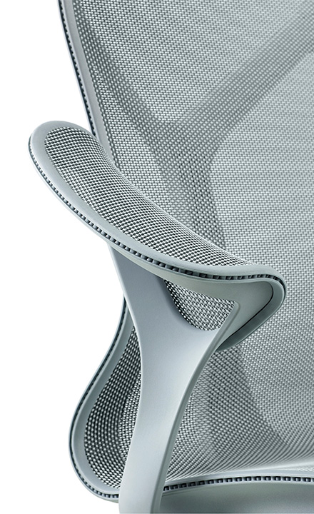 등받이와 시트로 이어지는 편안한 탄력 소재(Elastomeric intercept suspension)는 통기성이 좋습니다.