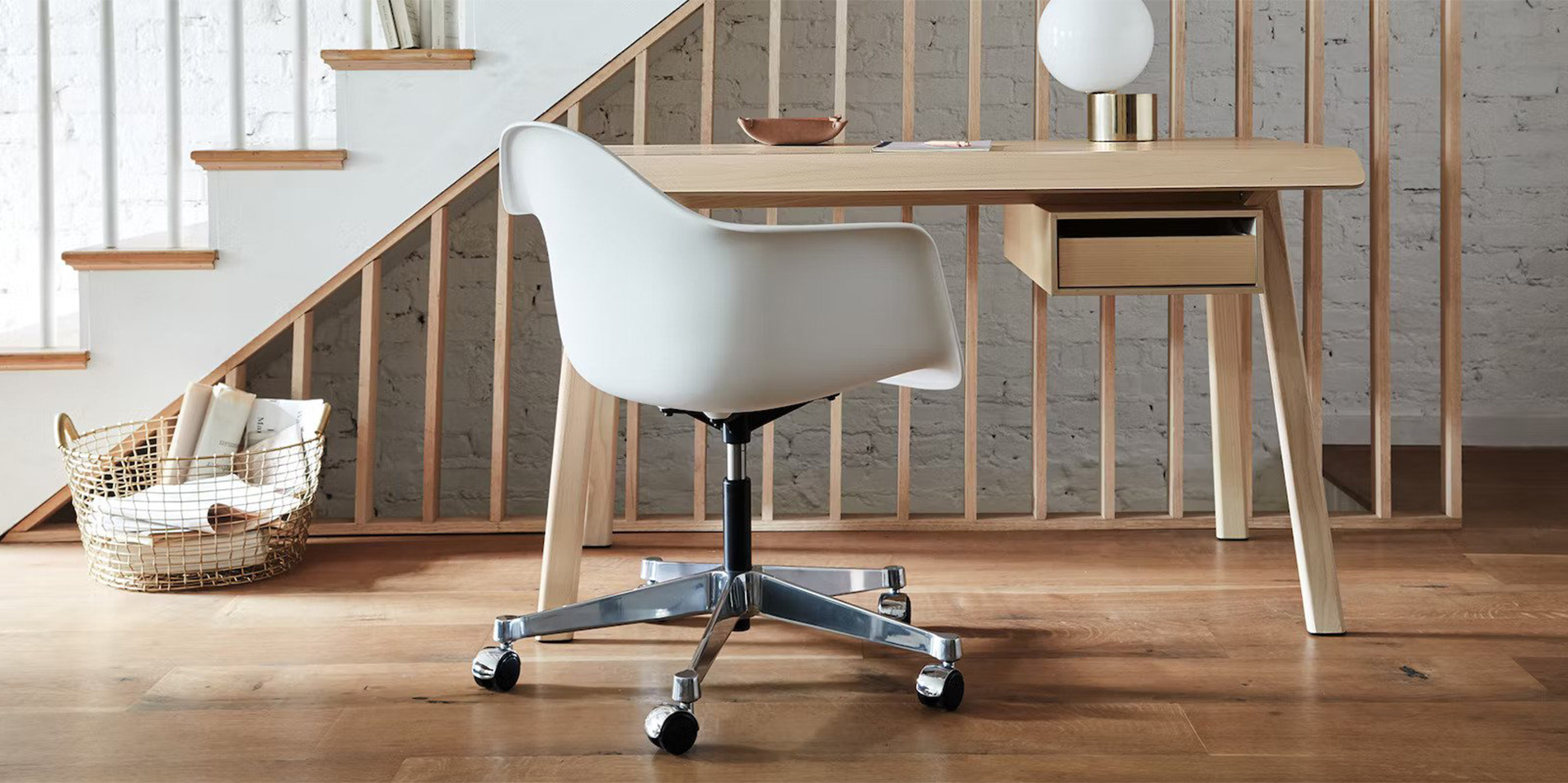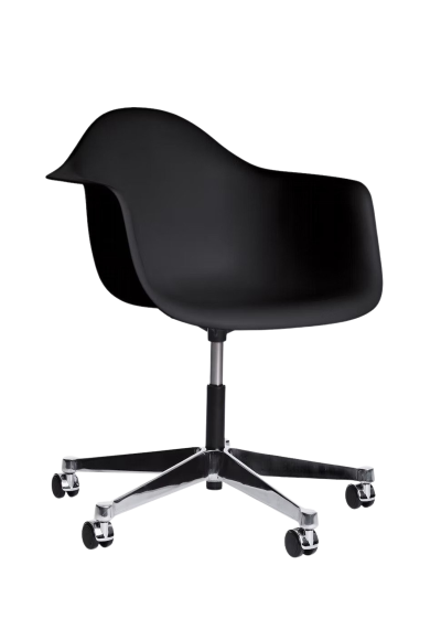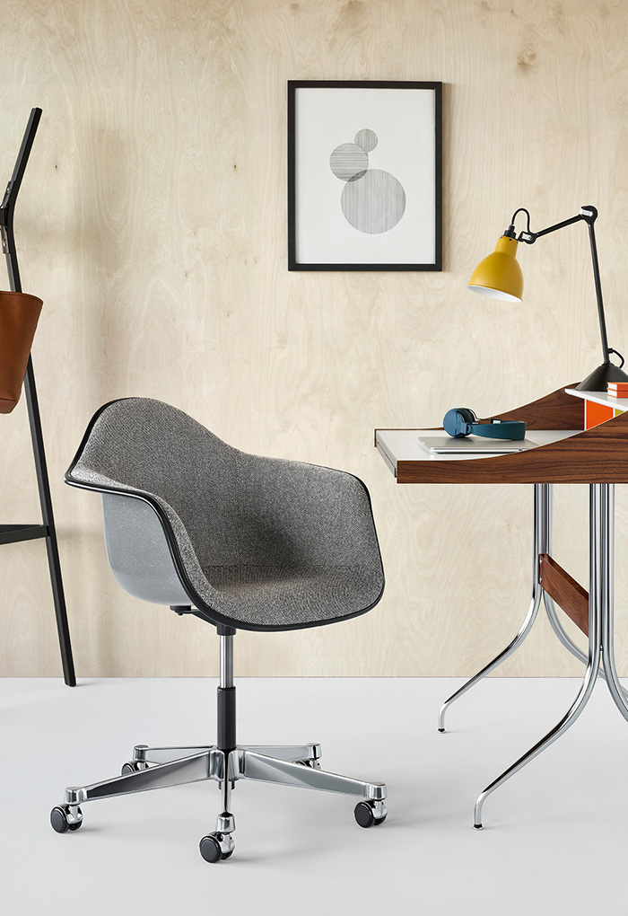 Eames Task Chair의 높이조절이 가능한 암체어 디자인과 안정성을 위해 five-star base와 결합하고 캐스터를 추가해 이동이 편리합니다.