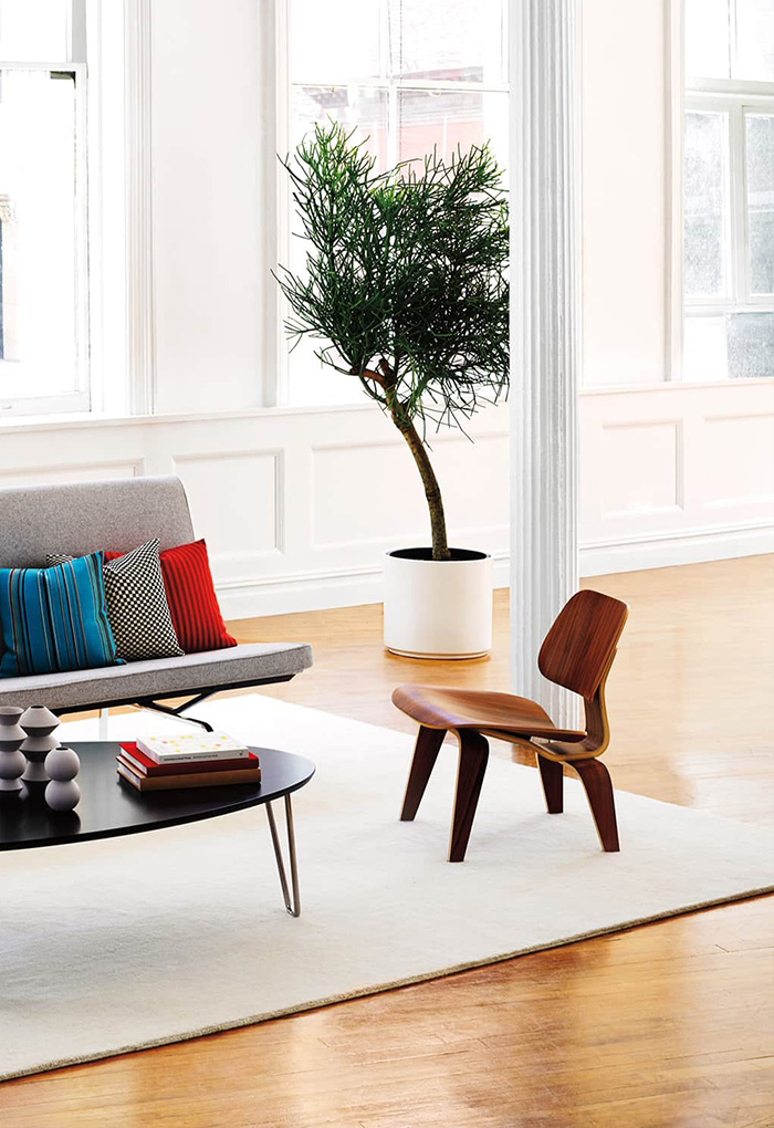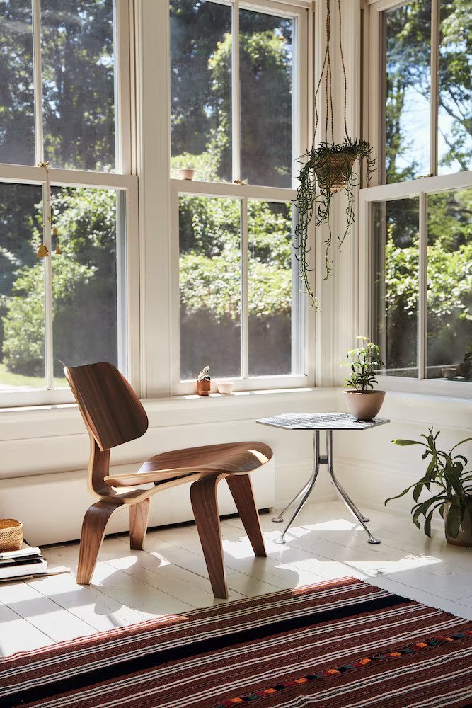 임스를 대표하는 가구 중 하나로 만들었습니다. 베니어의 얇은 시트를 부드럽게 구부려 단단하지만 유기적이고,