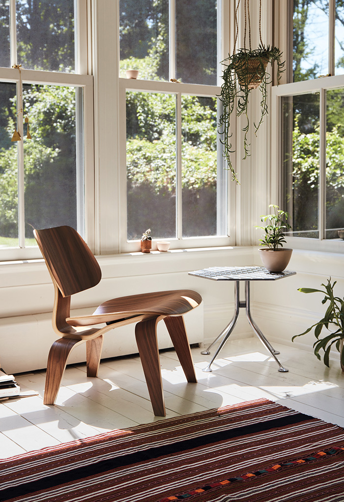 임스를 대표하는 가구 중 하나로 만들었습니다. 베니어의 얇은 시트를 부드럽게 구부려 단단하지만 유기적이고,
