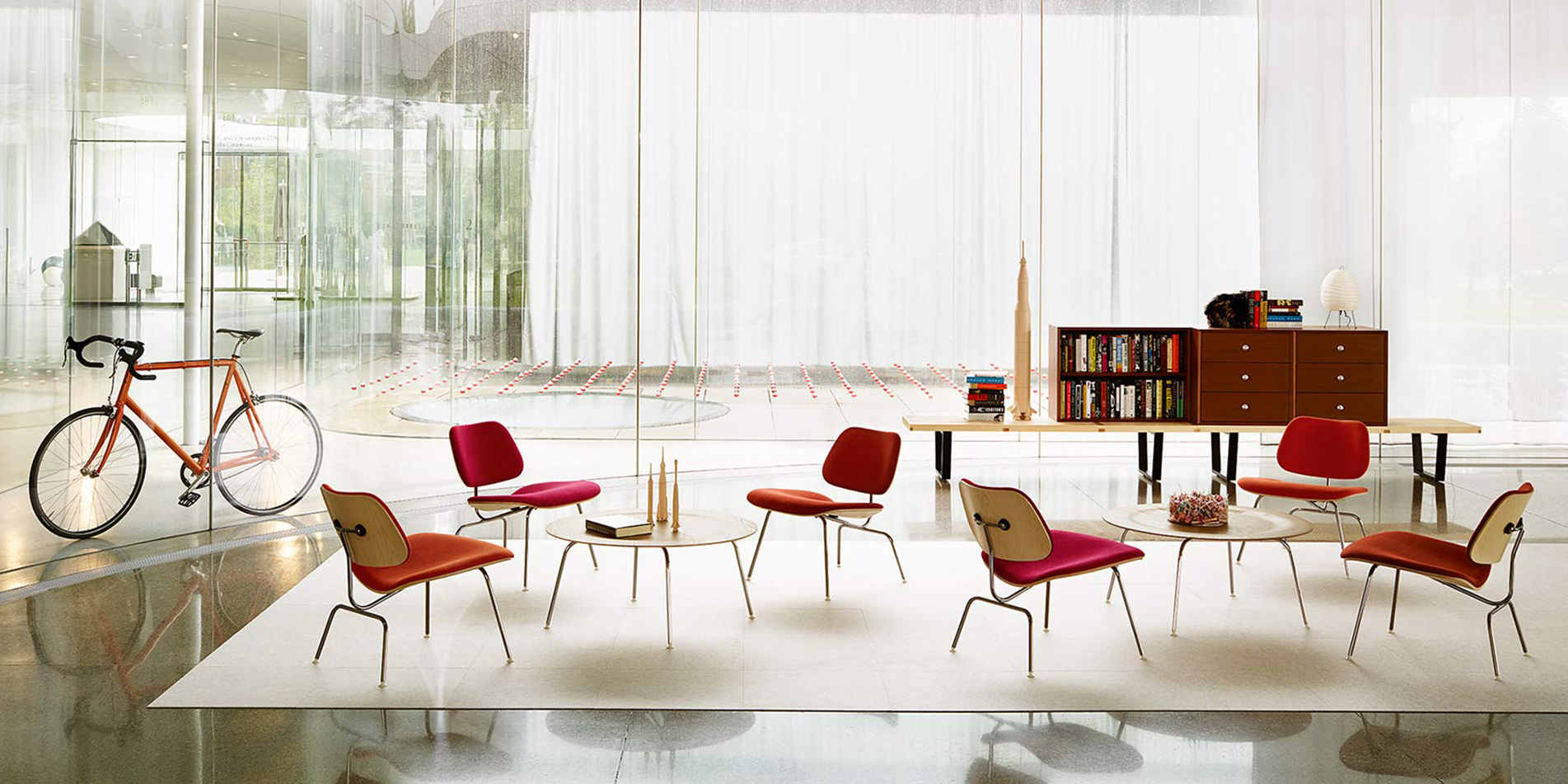 임스를 대표하는 가구 중 하나로 만들었습니다. 베니어의 얇은 시트를 부드럽게 구부려 단단하지만 유기적이고,