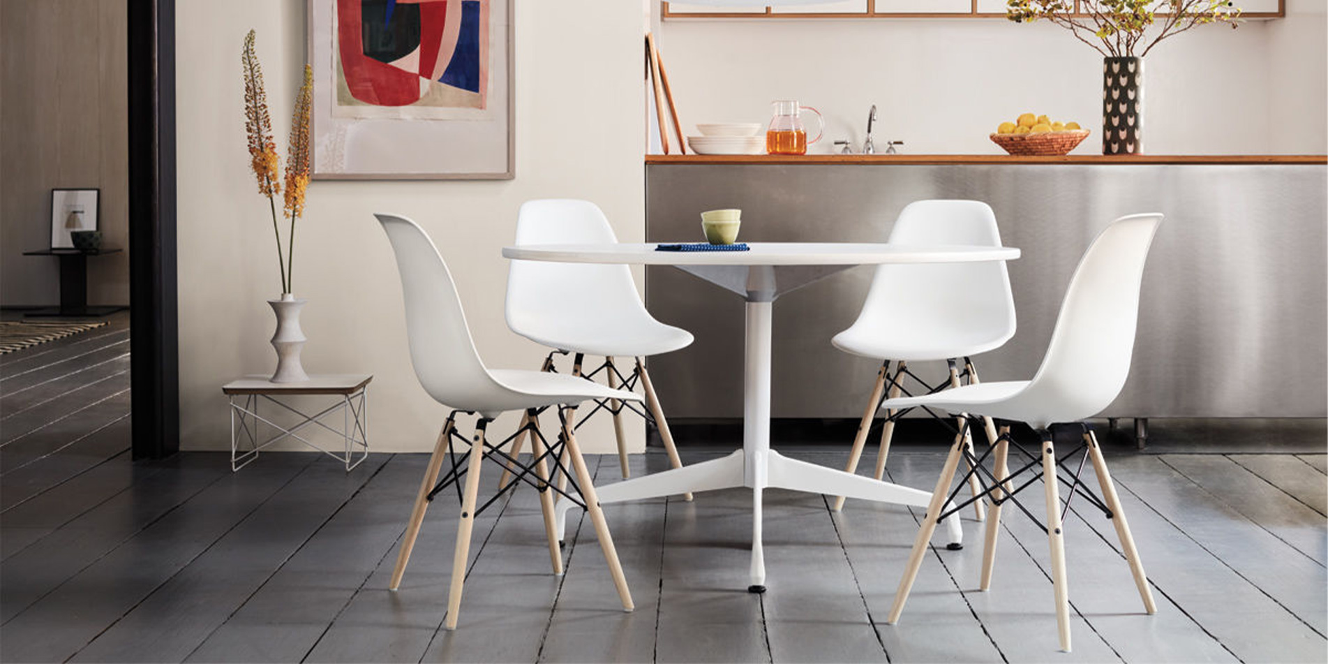 임스 몰디드 플라스틱 사이드 체어, 우드베이스, DSW