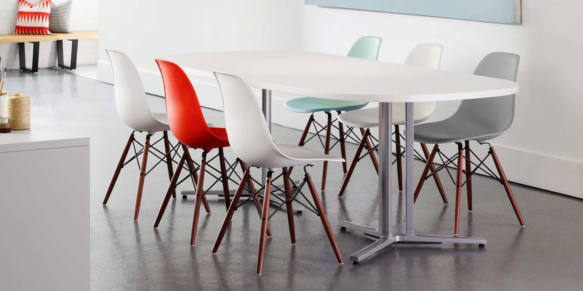 암체어로 나누어지며 Wire,Dowel,4-leg Base 등의 다양한 옵션과 컬러로 공간을 연출합니다다리베이스가 에펠탑을