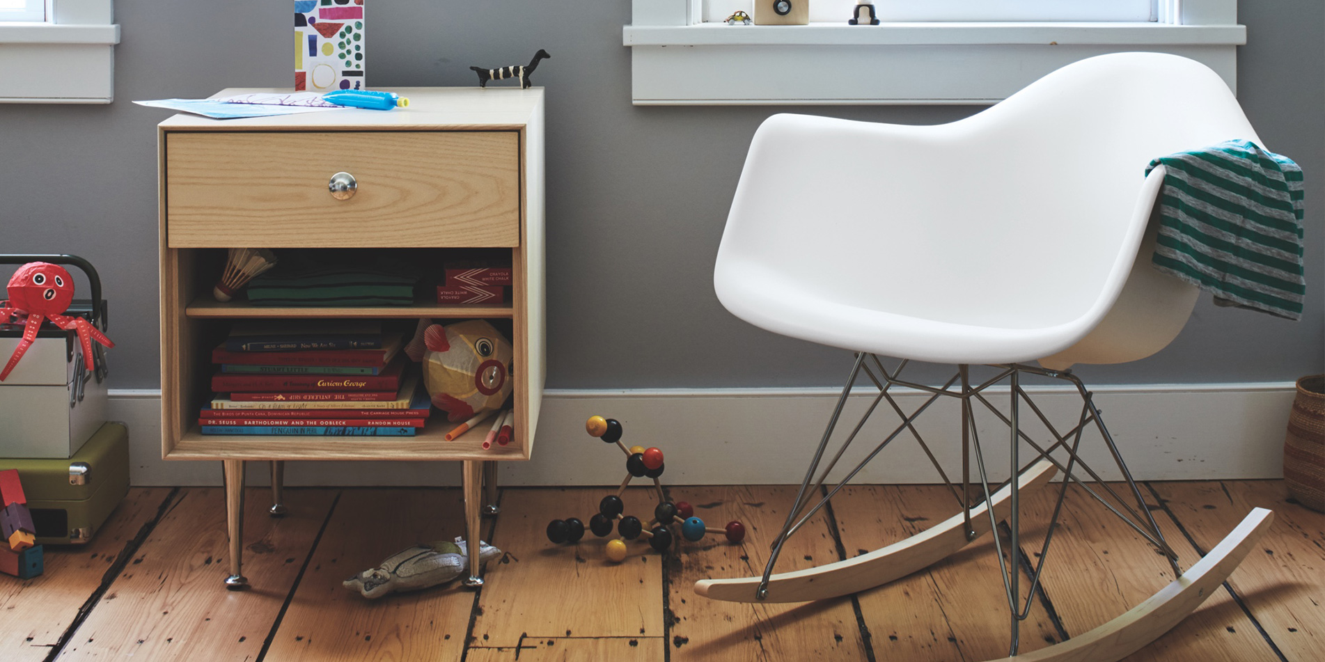 임스 몰디드 플라스틱 암 체어, 라커베이스-메이플, RAR