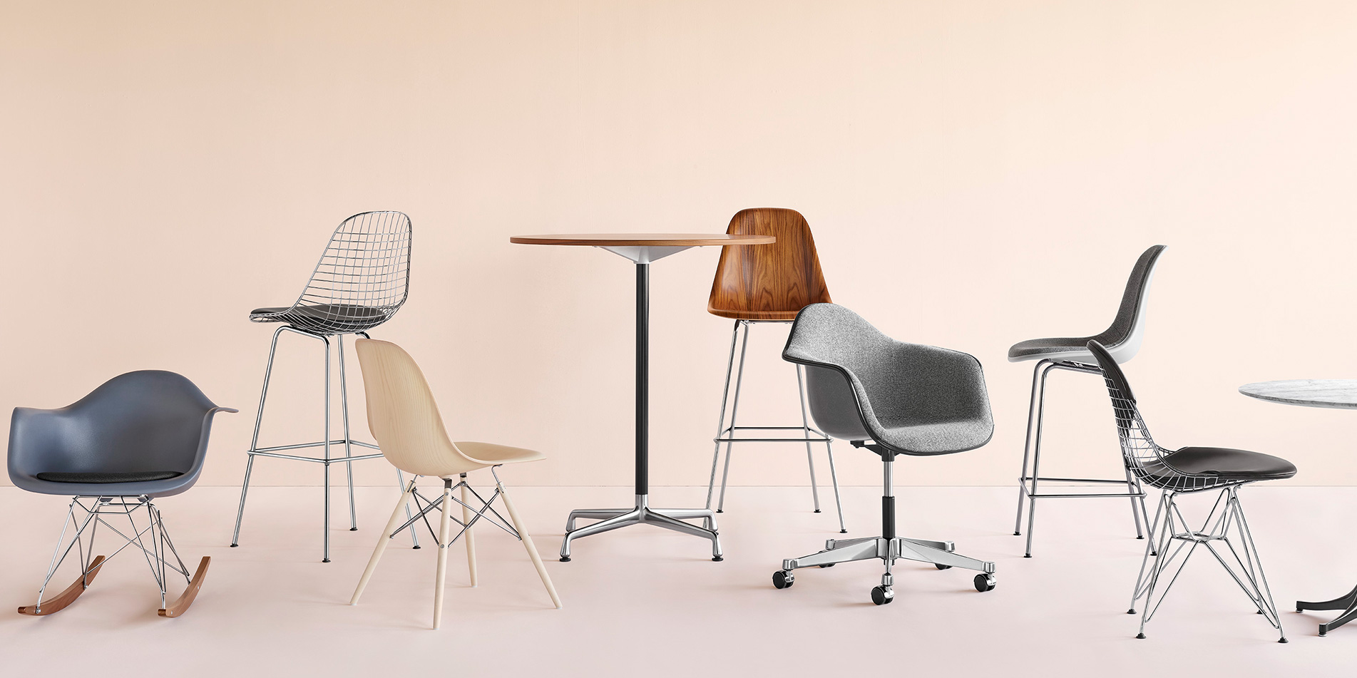 암체어로 나누어지며 Wire,Dowel,4-leg Base 등의 다양한 옵션과 컬러로 공간을 연출합니다다리베이스가 에펠탑을