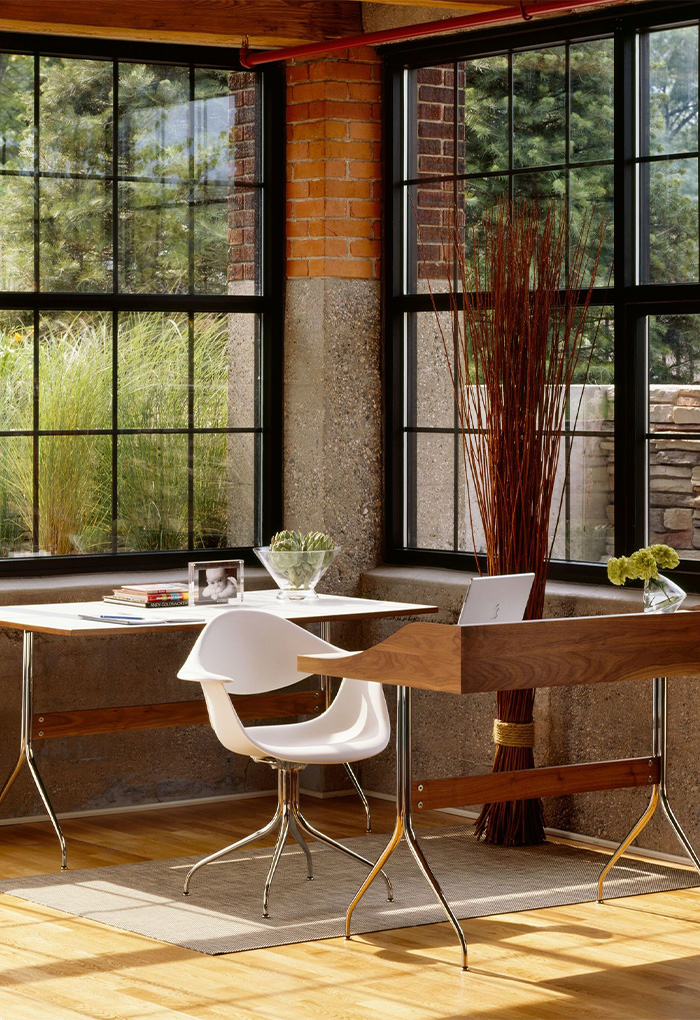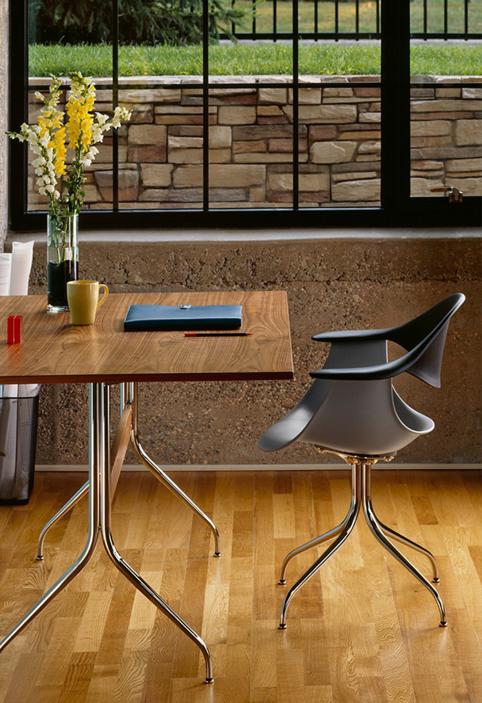 몸에 맞는 조각상의 형태를 한 독특한 체어를 시작으로 책상, 테이블, 식탁을 포함한 전체 넬슨 시리즈를 완성하게 됩니다.