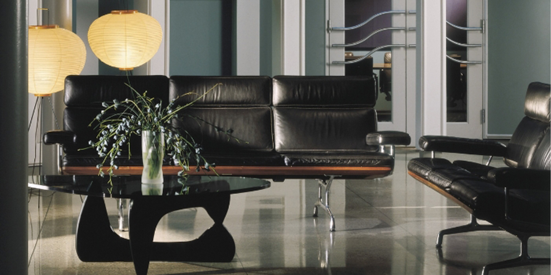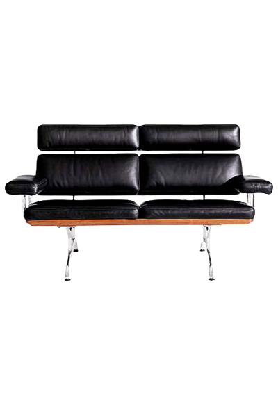 찰스와 레이 임스는 그들의 Softpad시리즈의 세련된 완성품으로 소파를 디자인했습니다.