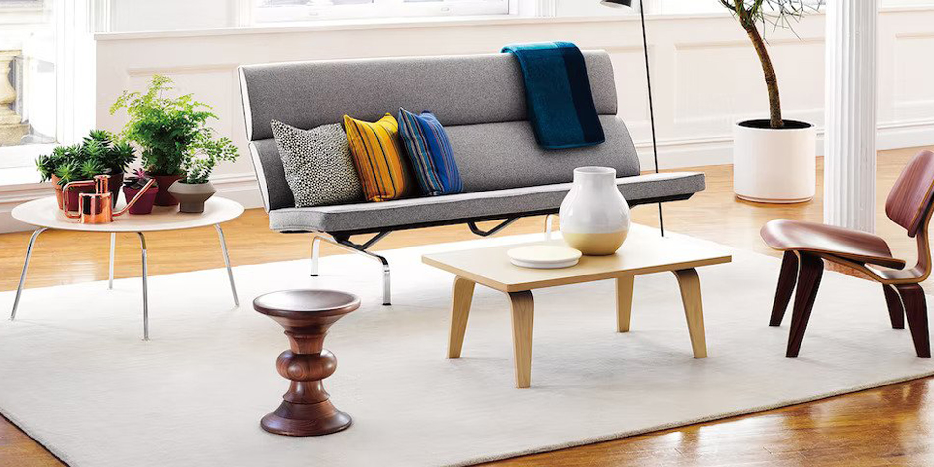 1940년대 디자인된 이 소파는 임스부부가 Pacific Coast에 위치한 자택용으로 처음 만들어졌습니다.