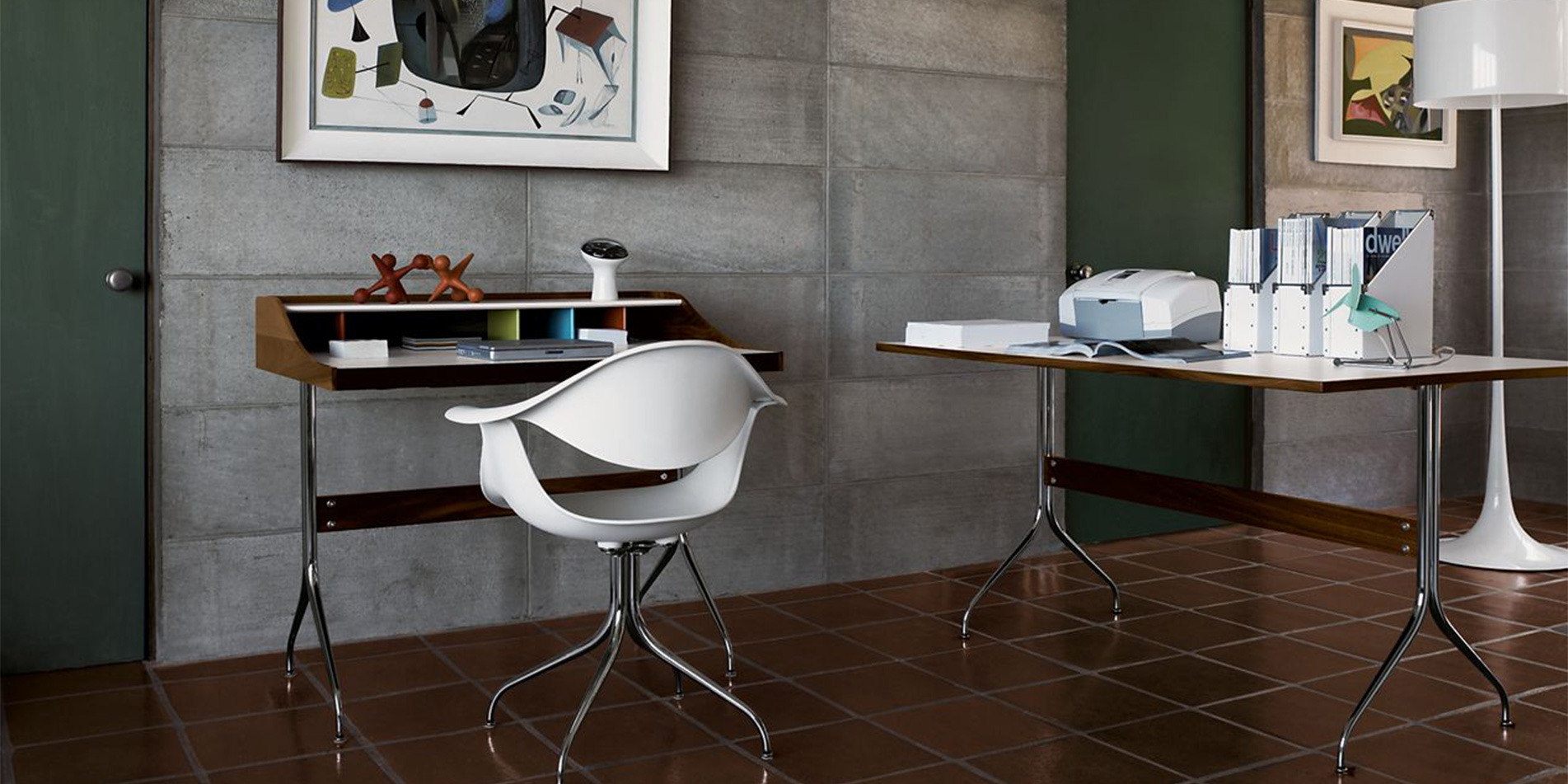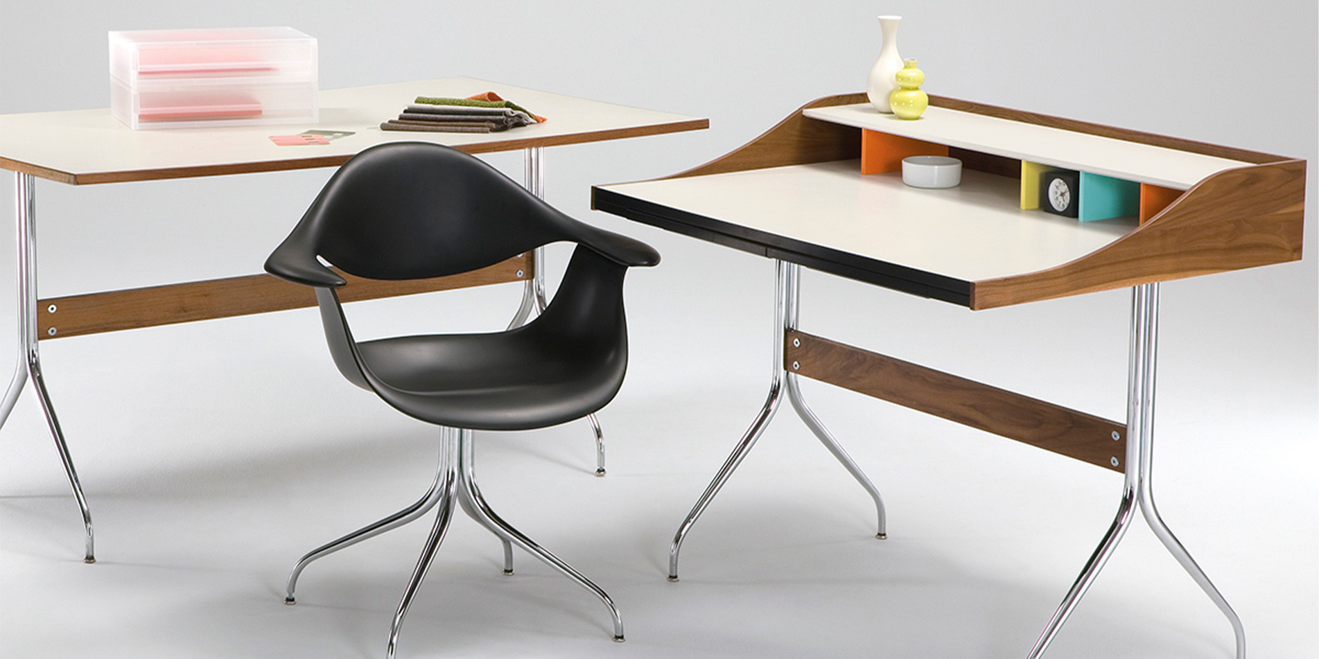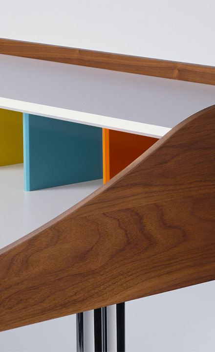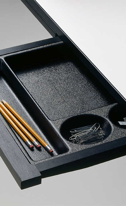특히 Desk는 상부의 다채로운 큐비홀과 서랍을 갖추어져 있으며, 케이블 관리가 용이하도록 설계되어 오늘날 노트북과 같은