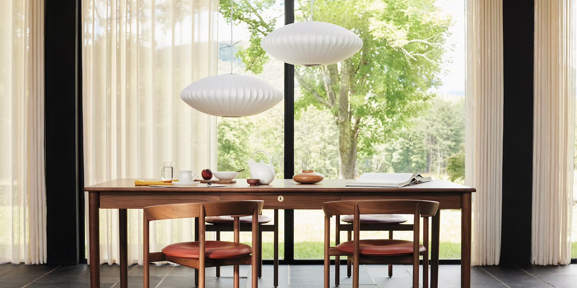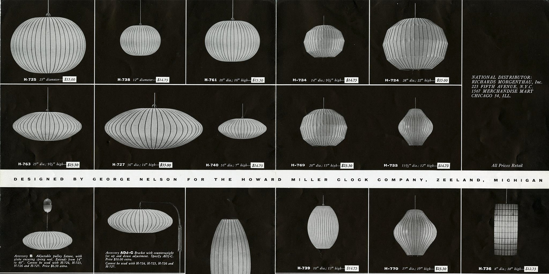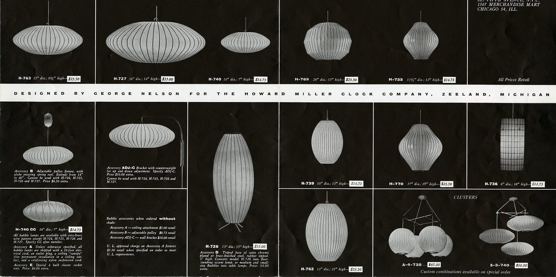 1952년 조지 넬슨이 디자인한 Nelson Bubble Lamp시리즈는 가벼운 강철 프레임으로 만들어졌지만 유동적이고 우아한 형태를 가졌습니다