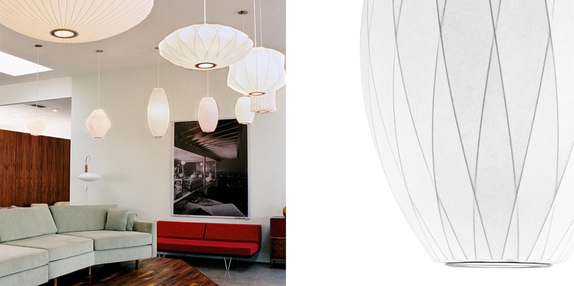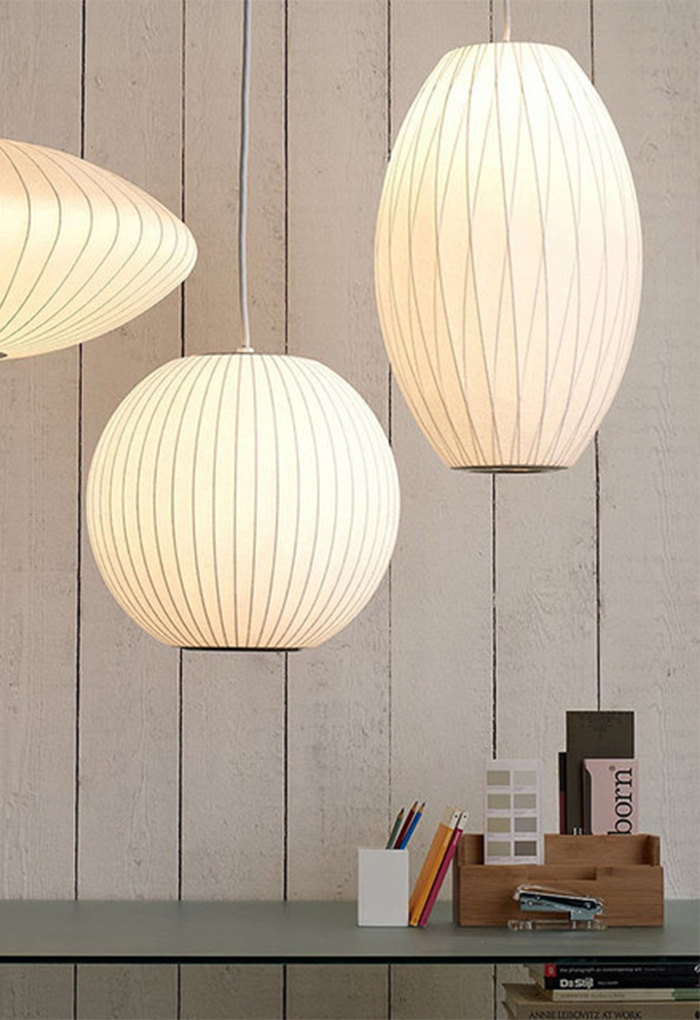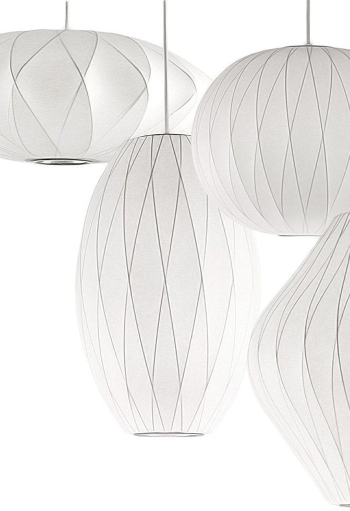 1952년 조지 넬슨이 디자인한 Nelson Bubble Lamp시리즈는 가벼운 강철 프레임으로 만들어졌지만 유동적이고 우아한 형태를 가졌습니다