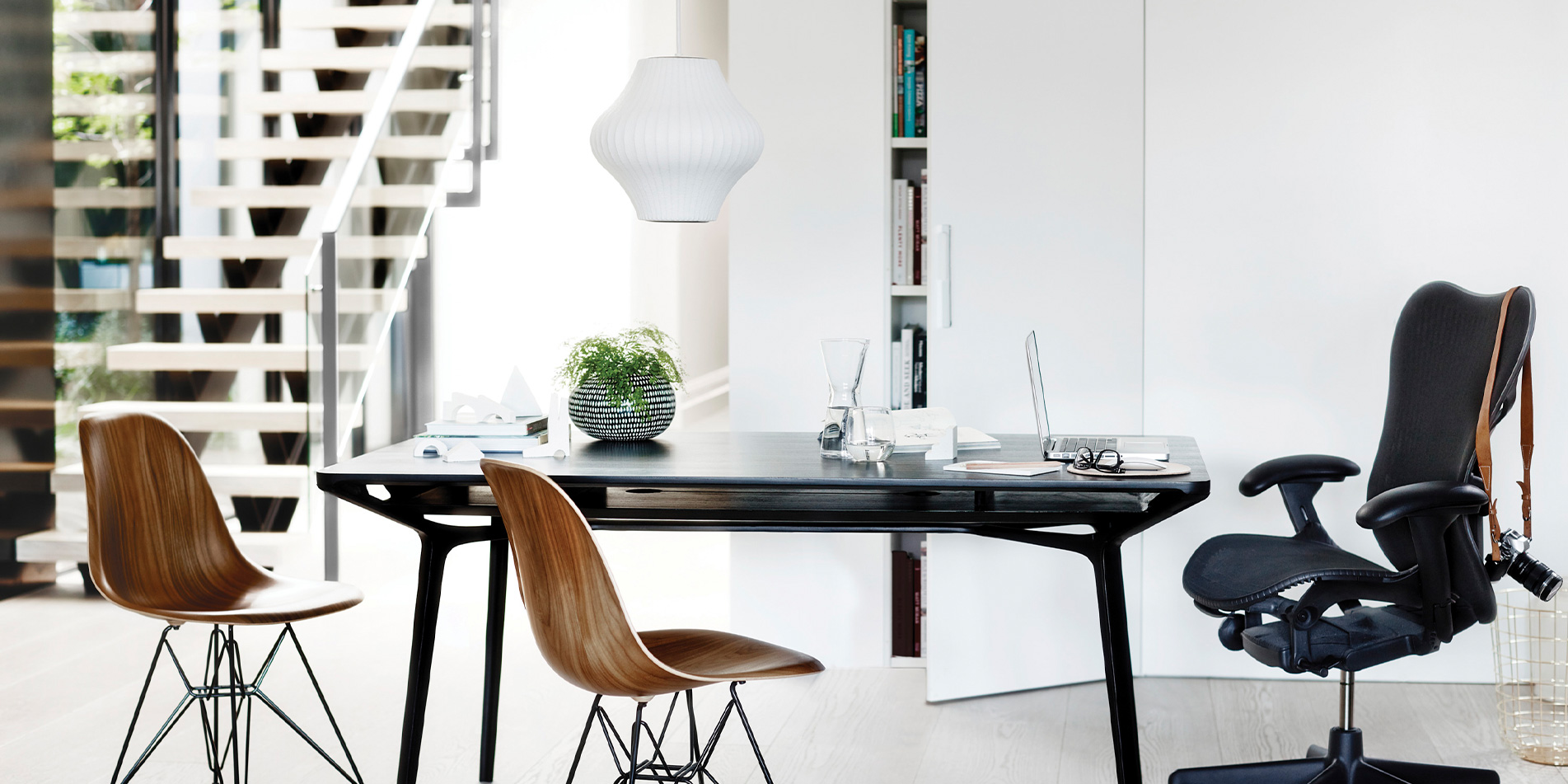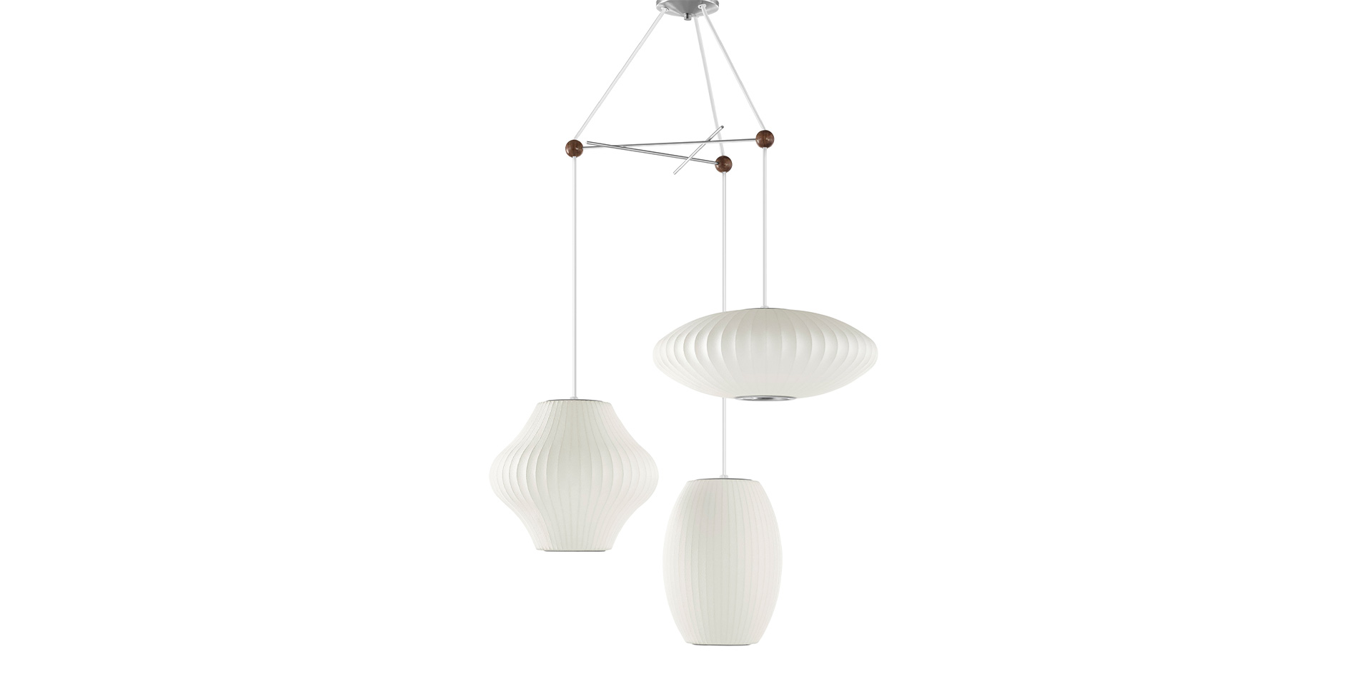 1952년 조지 넬슨이 디자인한 Nelson Bubble Lamp시리즈는 가벼운 강철 프레임으로 만들어졌지만 유동적이고 우아한 형태를 가졌습니다